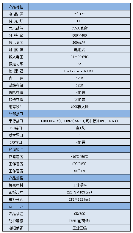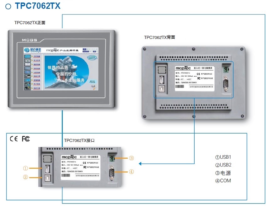 TPC7062TX,是一套以先進的Cortex-A8 CPU為核心(主頻600MHz)的高性能嵌入式一體化觸摸屏。該產(chǎn)品設(shè)計采用了7英寸高亮度TFT液晶顯示屏(分辨率800×480),四線電阻式觸摸屏(分辨率4096×4096)。同時還預(yù)裝了MCGS嵌入式組態(tài)軟件(運行版),具備強大的圖像顯示和數(shù)據(jù)處理功能。