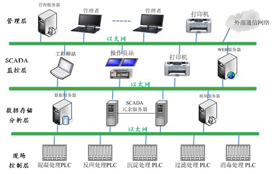 系統(tǒng)概述 在凈水廠中采用自動化控制系統(tǒng),實(shí)現(xiàn)凈水廠的生產(chǎn)控制、運(yùn)行操作、監(jiān)視管理,系統(tǒng)不僅有可靠的硬件設(shè)備,還有功能強(qiáng)大,運(yùn)行可靠,界面友好的系統(tǒng)軟件、應(yīng)用軟件、編程軟件和控制軟件。運(yùn)行和維護(hù)費(fèi)用低,操作方便。