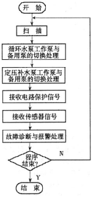 本系統(tǒng)為PLC實時設(shè)備監(jiān)控系統(tǒng)。對20臺循環(huán)水泵、16臺定壓補水泵進行PLC的定時起、停控制,包括主、備用泵(循環(huán)水泵、定壓補水泵)的定時切換、水泵前端的水流信號檢測和報警,水泵過載短路故障報警。